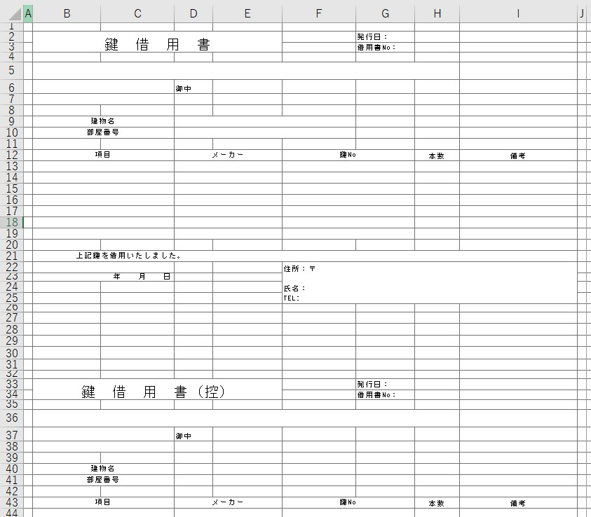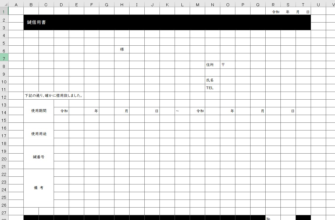 こうした課題を解決するのが、無料でダウンロードできる鍵借用書テンプレートです。当ページでは、実務ですぐに使えるExcel形式のテンプレートをまとめてご紹介しています。A4サイズに最適化された様式のため、印刷して運用することも、データで管理することも可能です。Excelならではの編集のしやすさにより、状況に応じた柔軟な対応ができるのも大きな特徴です。