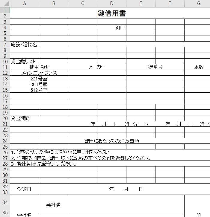 鍵借用書の作成において、「どのような様式で管理すればいいのか分からない」「返却時の確認が曖昧になってしまう」と感じたことはありませんか?会社や施設、物件管理などの場面では、鍵の受け渡しを正確に記録しておくことが重要ですが、書類が整っていないとトラブルの原因になることもあります。特に使用目的や貸出期間が明確でない場合、後からの確認が難しくなるケースも少なくありません。